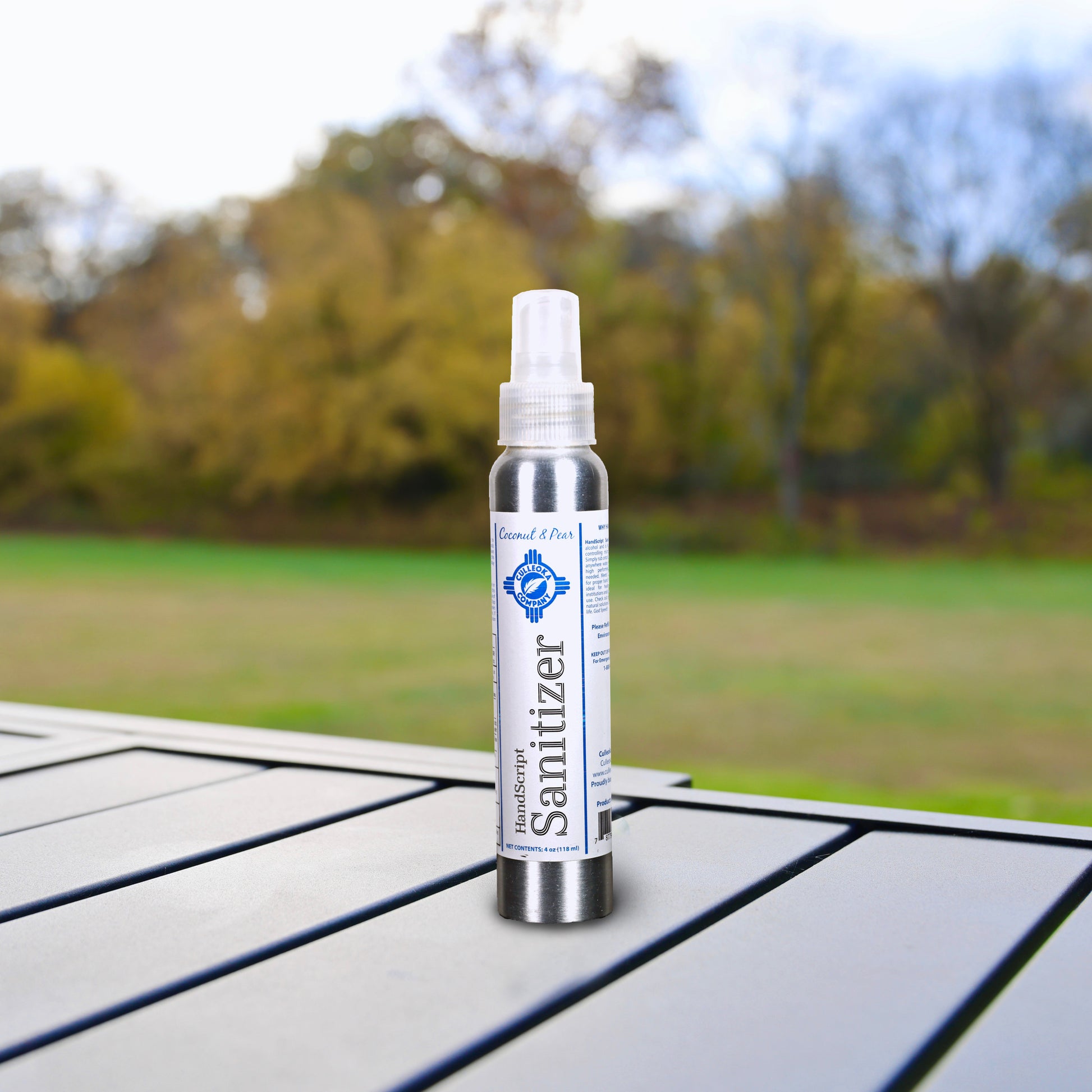 The 4oz size and aluminum bottle of Personal HandScript Mist Spray Hand Sanitizer are the perfect size for portability. Refillable and containing 80% alcohol-based mist spray that is infused with coconut and pear extracts, it offers an effective defense against germs and bacteria without the unpleasant olfactory experience associated with other sanitizers. Get a bundle of 4 to keep in your car, bathroom, purse and even your spouse's car.